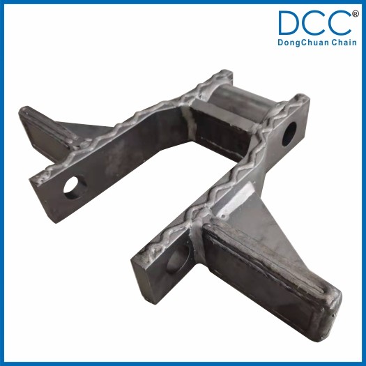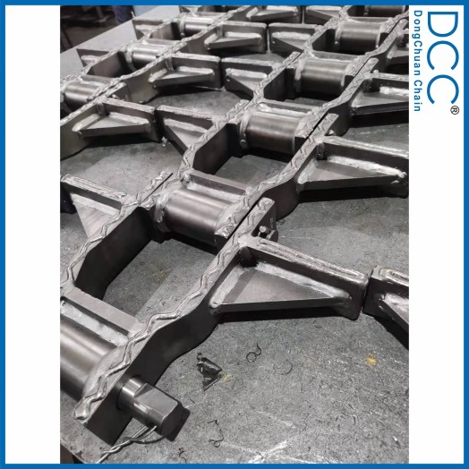 鏈條的刮板與鏈板焊接后又增加了一塊加強板,大大提高了刮板與鏈板的焊接強度,在鏈條的使用過程中,能使刮板長期承受較高的沖擊載荷而不脫焊。
