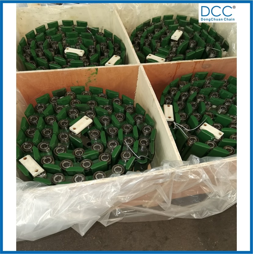 鏈條頂板采用優(yōu)質(zhì)合金鋼制造,通過(guò)中頻加熱成型,使每塊頂板的成型角度都一致,避免了因頂板角度不統(tǒng)一造成紙卷的承受力不一致的現(xiàn)象,同時(shí),頂板采用了整體熱處理的工藝,強(qiáng)化了頂板的強(qiáng)度,在鏈條長(zhǎng)時(shí)間運(yùn)行過(guò)程中具有不變形、不開(kāi)裂等特性。